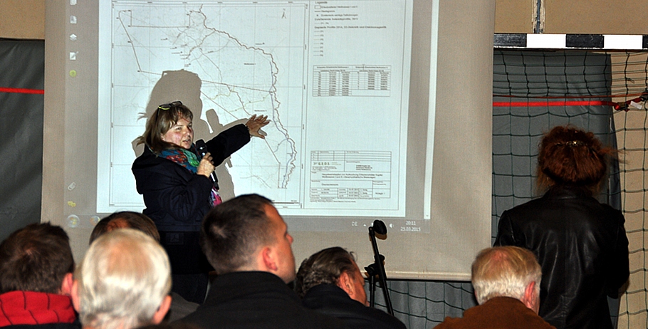 Dass sie auch anders kann, wurde klar, als »ihr« Bohrmeister von Exalo im Überschwang von »20 bis 30 weiteren Bohrungen« redete, die im Areal Weißwasser noch gebohrt werden müssten. Dmowskas Moderator, Achim Freund von der G.E.O.S. mbH, bremste die Sache auf »4 geplante Bohrungen« herunter. Das reichte Dmowska nicht. Sie machte resolut klar: »Wir reden hier nur über diese eine Bohrung!« Freund sekundierte: »Was danach kommt, ist Spekulation.« Lagerpusch bekräftigte: »In dieser Bohrung wird nicht gefrackt.«